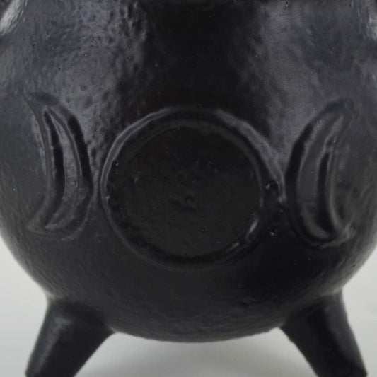 Cast Iron Small Cauldron Triple Moon Design With Removable Lid