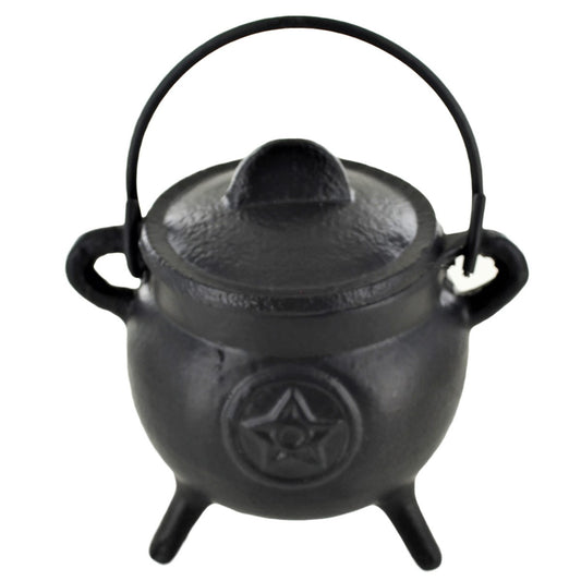 Cast Iron Small Cauldron Pentagram Design With Removable Lid