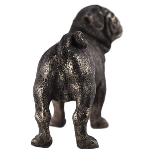 Pug Dog Figure Cold Cast Bronze Standing Sculpture