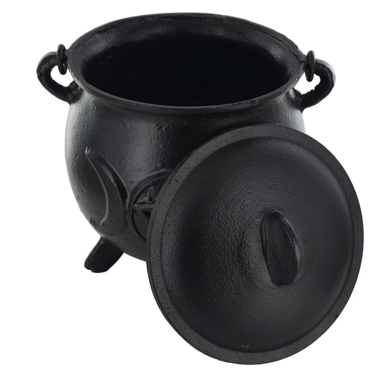 Large Cast Iron Cauldron with Triple Moon Phase Design12x15cm