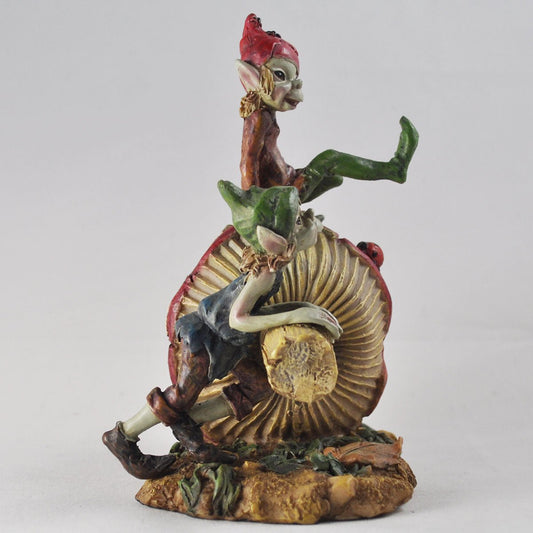 Pixie Brothers Sat On A Mushroom Garden Or Home Decor Figurine