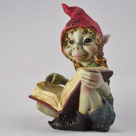 Pixie Sat Reading Books Set of 2 Garden Or Home Decor Figurine