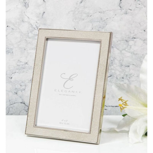 Elegance Nickel Plated Cream Faux Shagreen 4 x 6 Frame
