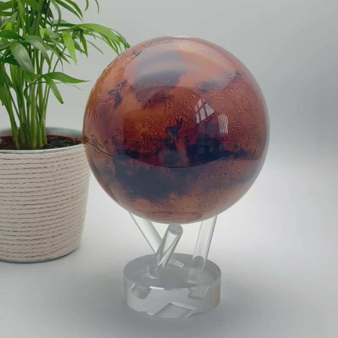 - Discover a world of wonder with the MOVA Mars planet Globe! This beautifully crafted 4.5" globe rotates silently, powered by light alone. No need for batteries or cords, making it the perfect addition to any home or office. Bring the world to your fingertips with this mesmerizing piece.
