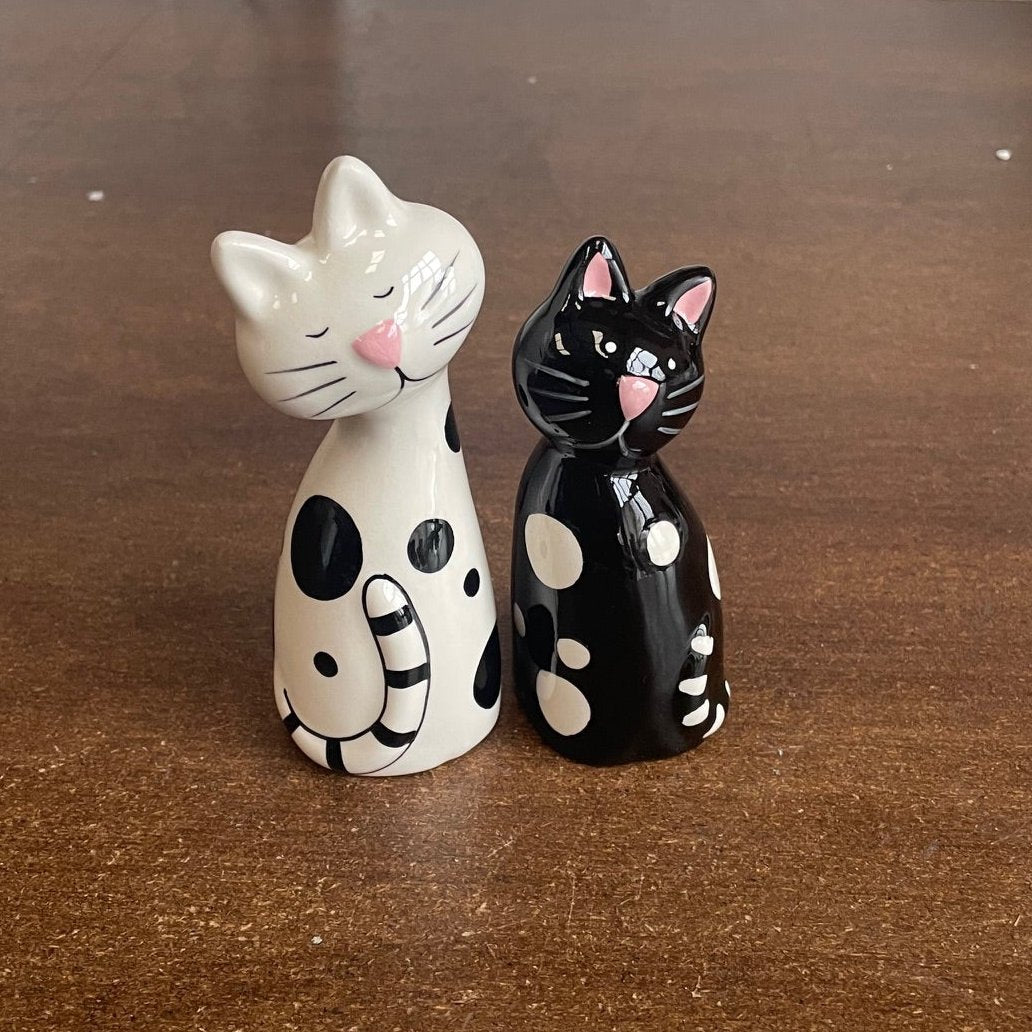 - Lovely set of cat salt and pepper shaker pots hand painted